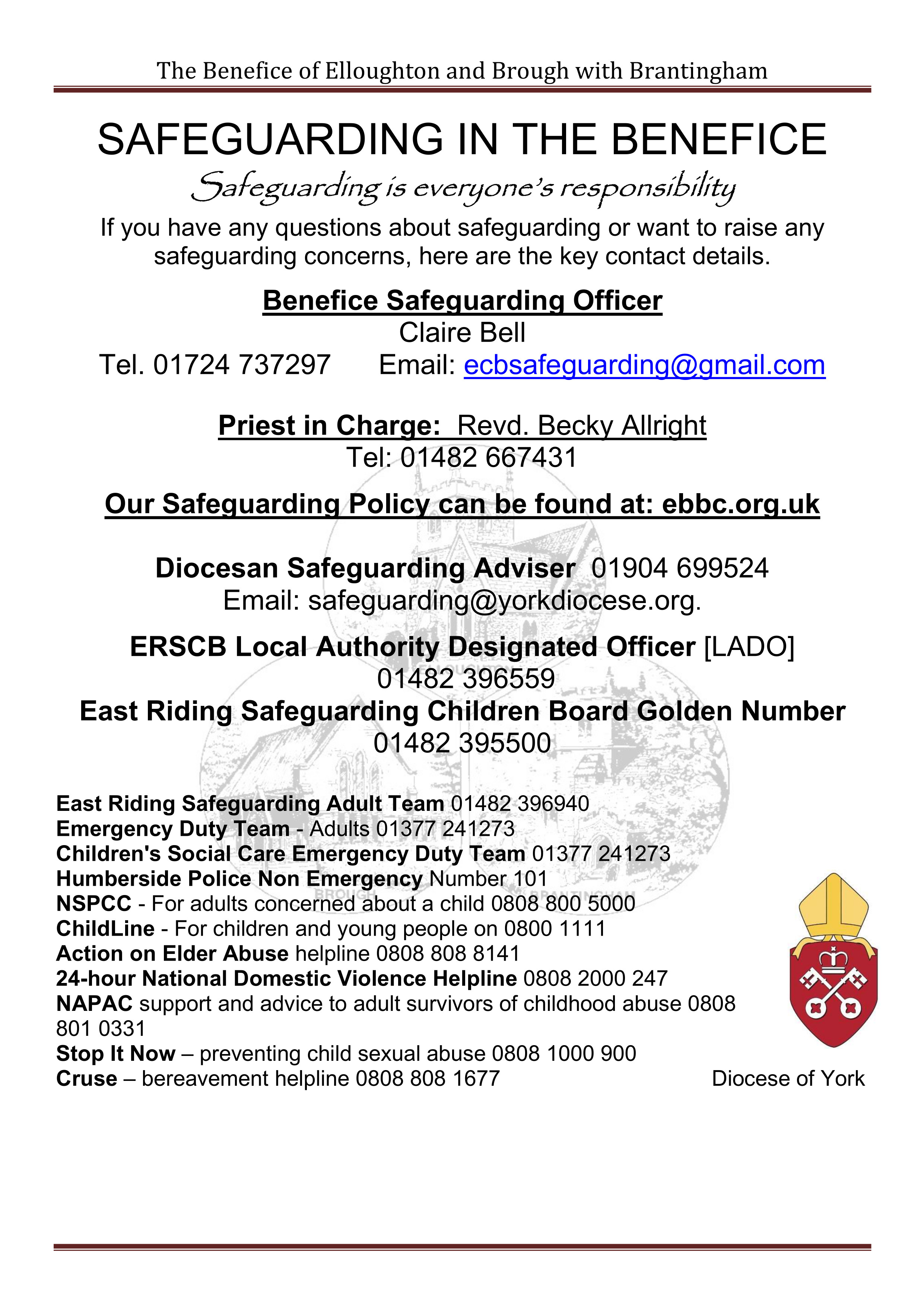 If you wish to get in touch, please contact our local safeguarding team: ecbsafeguarding@gmail.com